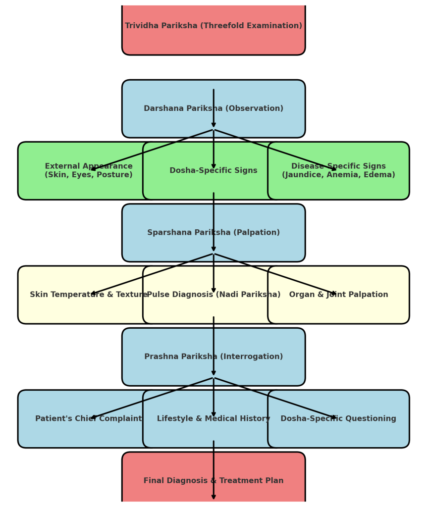 Stepwise Clinical Flowchart for Trividha Pariksha